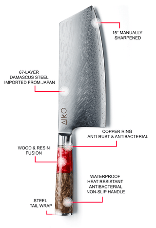 The Aiko Red (あいこ, アイコ) Damascus Series Knives: