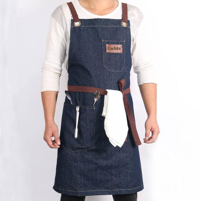 • Construido para soportar las cocinas más duras y los esfuerzos de cocción. Denim hecho a mano, que es suave y transpirable, sin embargo fuerte y flexible.